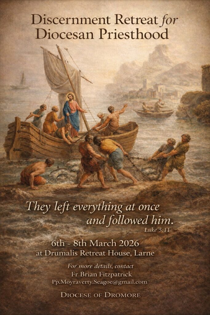 Is God calling you to priesthood? Come along to our discernment Retreat for the Diocesan Priesthood: 6th - 8th March 2026 at Drumalis Retreat House, Larne.